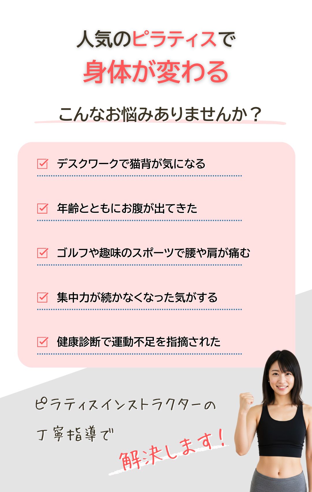 正しい姿勢と筋肉のバランスを整えることで、引き締まった体づくりに効果的です。